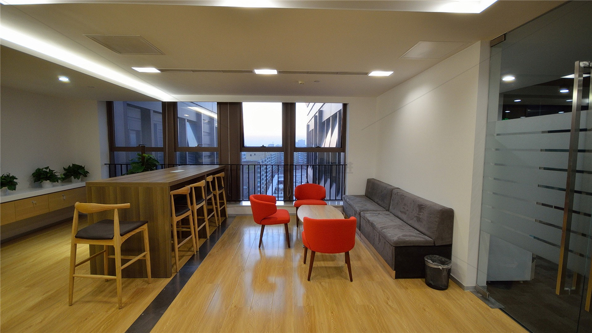 繽紛的休閑沙發(fā)&茶幾,配以原木色的吧臺(tái)。你可開(kāi)啟一場(chǎng)有趣的聊天,或者欣賞窗外的綠色。員工也可以在這個(gè)區(qū)域里充分交流溝通,休息娛樂(lè)無(wú)限創(chuàng)意。