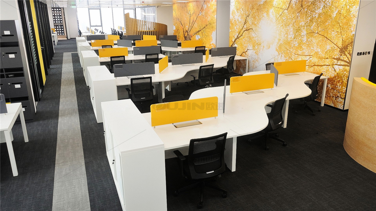 空間不只是提供一個創(chuàng)業(yè)者們的辦公場所,更多的是一群富有創(chuàng)意激情的人員一起協(xié)作的地方,是由多個個體組成的一個大的家庭。為了營造出一個溫馨、舒適、時尚、健康的辦公環(huán)境,歐進(jìn)家具在設(shè)計中結(jié)合了辦公空間的整體性運(yùn)用S蛇形形狀的辦公桌設(shè)計,大面積的采用了隨性動感的曲線條組合而成為簡約靈動空間。就像是帶著旋律舞動的絲帶,歡樂而又有激情的飛揚(yáng)在整個空間之中,從而帶動了員工的創(chuàng)新研發(fā)的靈感。