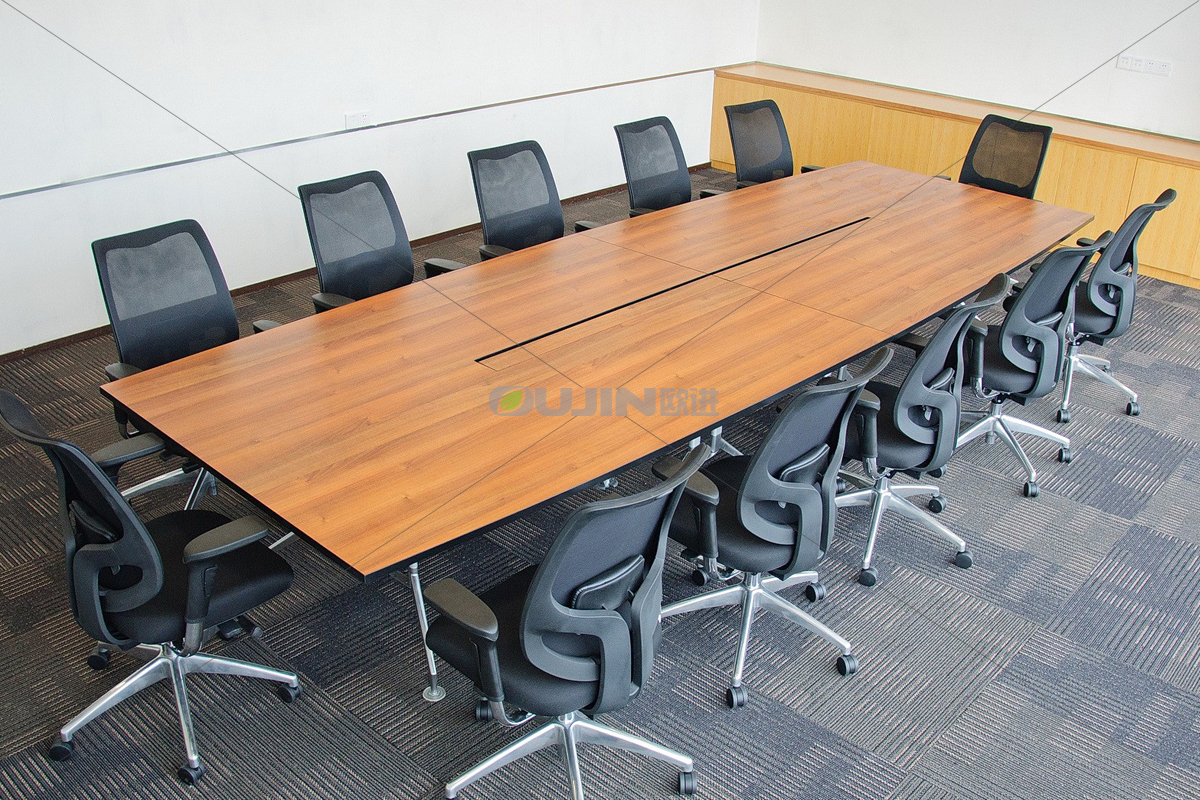 會議桌采用木紋色配以簡潔的鋼腳臺架,在視覺上如同顯得非常簡約而不簡單。這樣的設(shè)計意在用現(xiàn)代的辦公家具造就一個舒適活躍的會議氛圍,鼓勵大家更多的遇見、交流與碰撞。