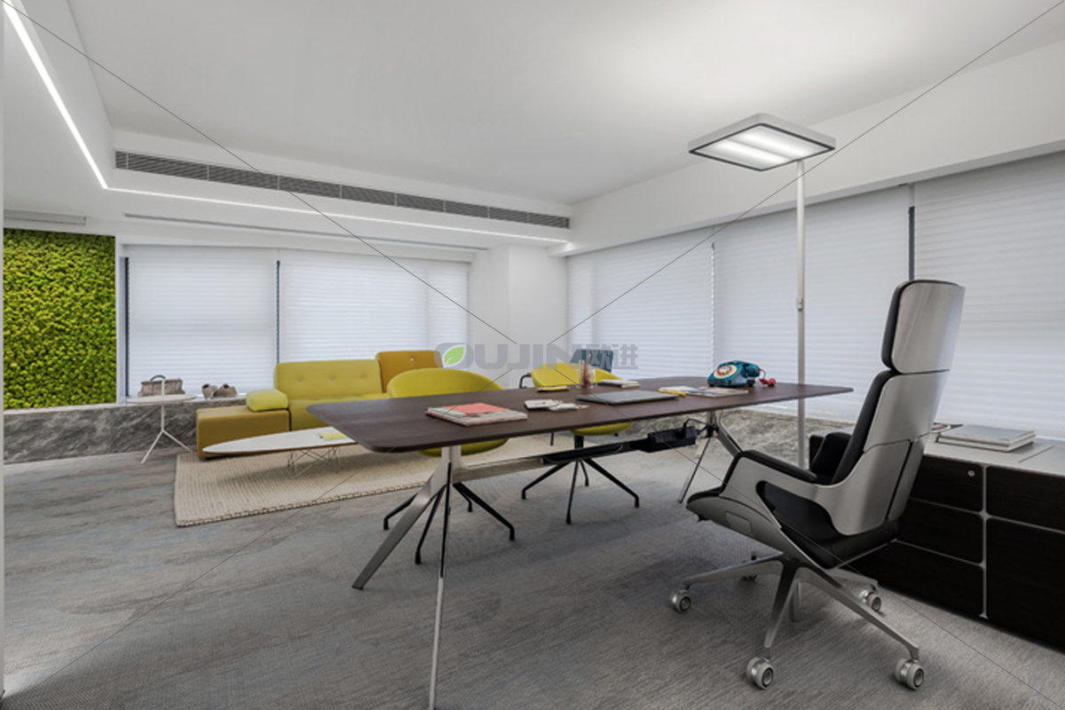 如何讓工作與生活的界限在一個空間里消融,如何使共事的人與人之間回歸簡單樸實的交流,是格洛伊辦公室的設計訴求。這與崇尚“容易被忽視卻能真正改變生活”的簡約理念不謀而合。歐進家具提取自然、簡單、色彩、童趣等關鍵詞,構建了一個具多功能和情感聯(lián)結(jié)的辦公生態(tài)。歐進家具團隊創(chuàng)造出敞亮通透的空間且達到使用面積的最大化。