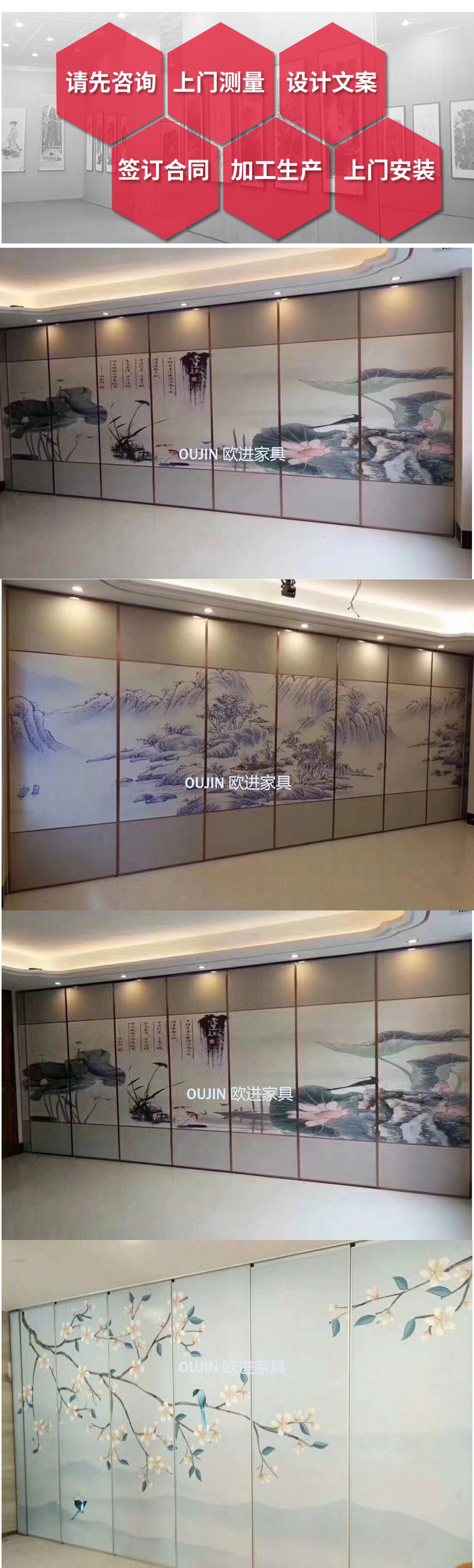 活動(dòng)隔音高隔斷適用于五大場(chǎng)景:高檔酒店,星級(jí)賓館,高檔會(huì)議室,大型 展覽廳河舞蹈教室。擁有素板,面飾板山水畫,硬包和軟包等款式,多種皮革顏色可供選擇。