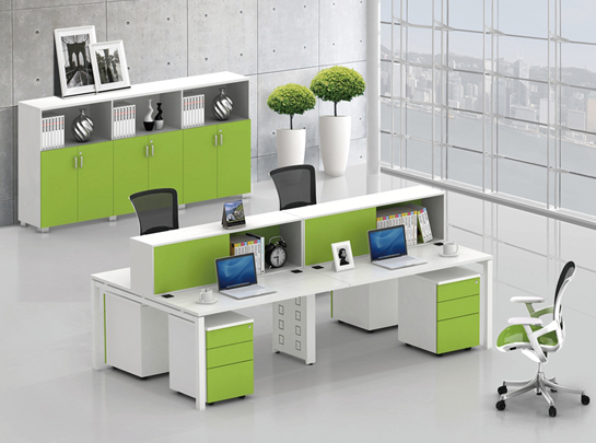 格萊美職員辦公桌擁有多種組合方式,除了單排、雙排的造型外,四人位組合,六人位組合,八人位組合,還有三人120°、四人十字形組合方式,能迎合不斷變化的辦公環(huán)境需求。120°型工作站為小團(tuán)隊(duì)協(xié)作辦公提供支持,3人位或6人位,按需求分配位置,利于同一團(tuán)隊(duì)的同事進(jìn)行互動、交流,提供工作效率。