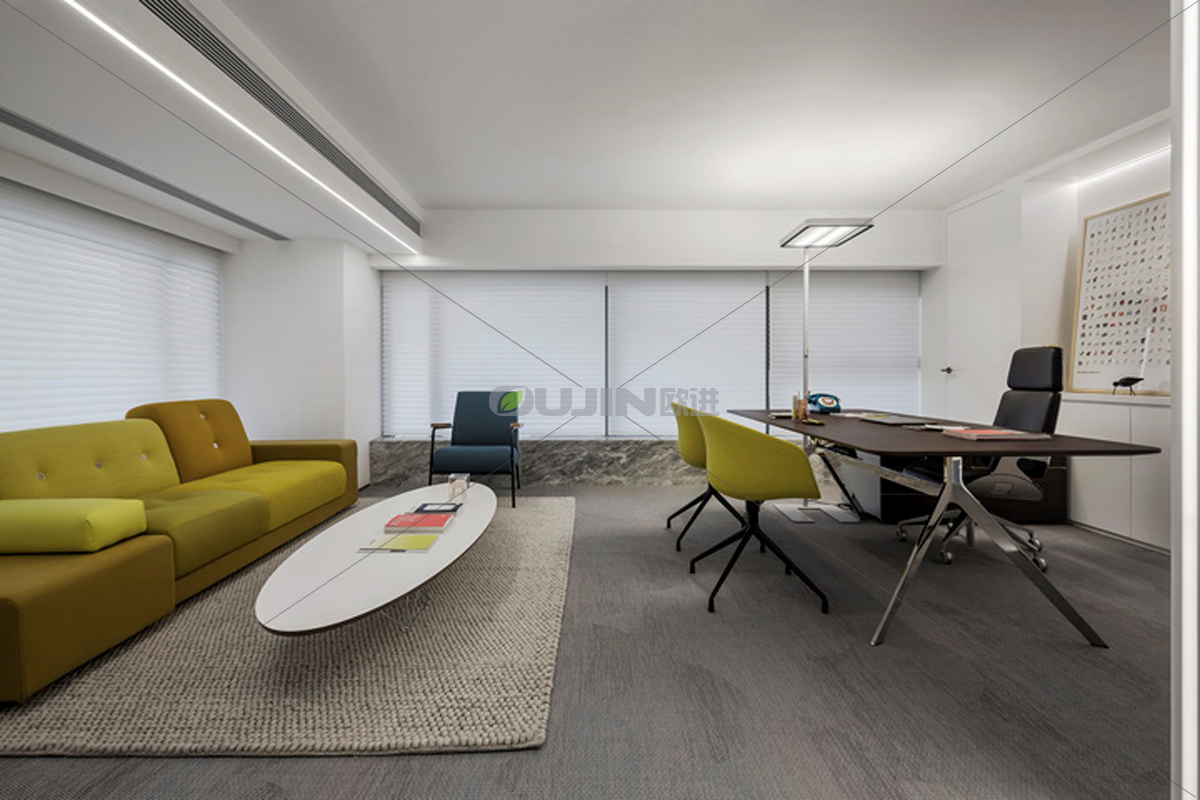 如何讓工作與生活的界限在一個空間里消融,如何使共事的人與人之間回歸簡單樸實的交流,是格洛伊辦公室的設計訴求。這與崇尚“容易被忽視卻能真正改變生活”的簡約理念不謀而合。歐進家具提取自然、簡單、色彩、童趣等關鍵詞,構建了一個具多功能和情感聯(lián)結(jié)的辦公生態(tài)。歐進家具團隊創(chuàng)造出敞亮通透的空間且達到使用面積的最大化。
